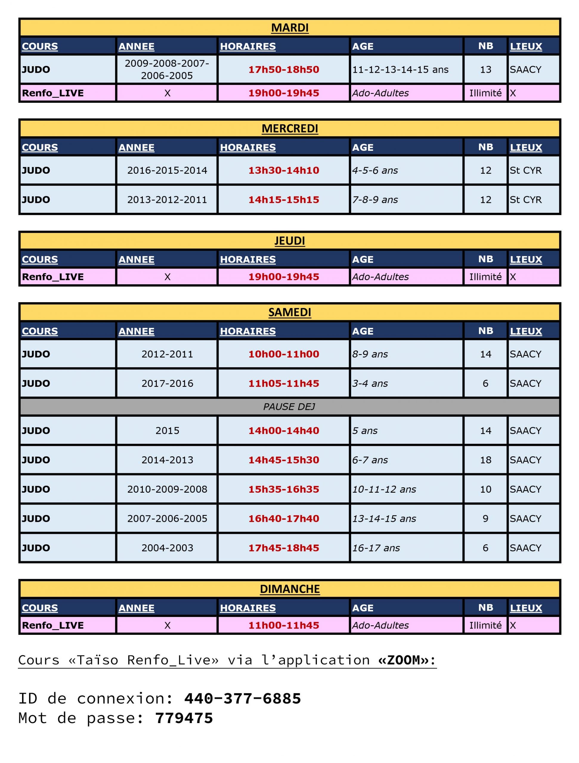 - Le stage est limité à 20 judokas, afin de respecter les normes de sécurité en vigueur, et n’aura lieu que si au moins 10 Judokas sont inscrits.