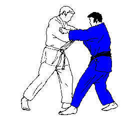 3 – Tori projette uke sur le dos en baissant les deux bras comme s’il rengainait un sabre dans son fourreau.