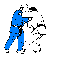 3 – Tori se laisse basculer en arrière pour accentuer le déséquilibre de uke. Sa jambe bloque celle de uke afin de provoquer la chute. Tori effectue une forte traction avec les mains vers le bas.